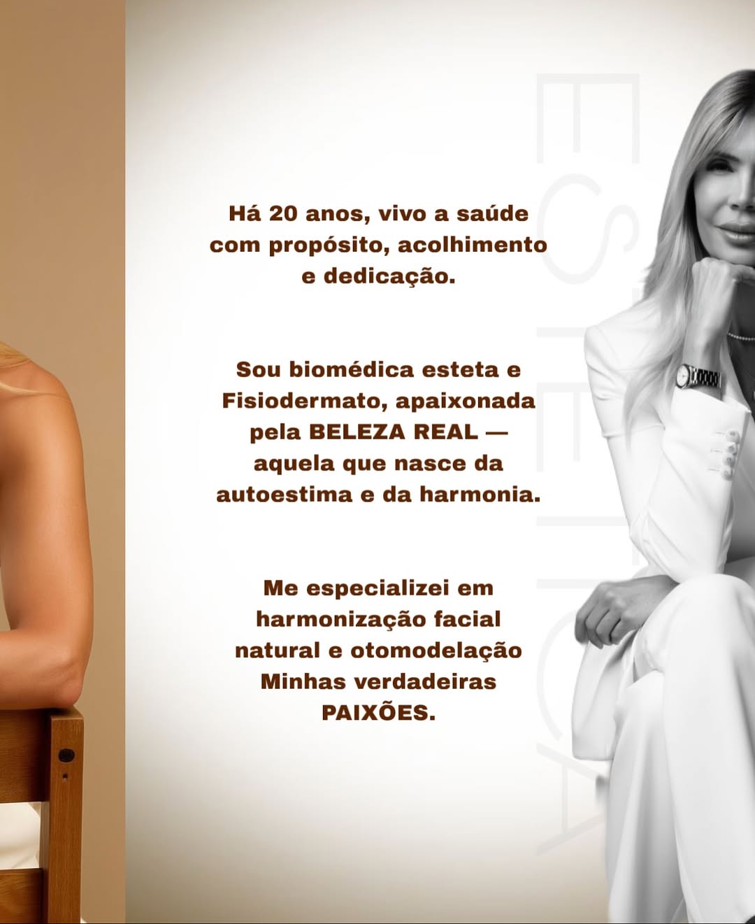 Sou biomédica esteta e Fisiodermato, apaixonada pela BELEZA REAL – aquela que nasce da autoestima e da harmonia.